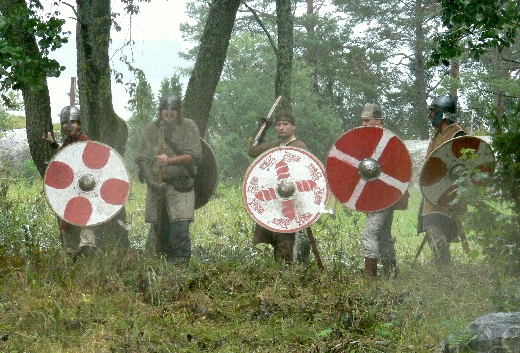 ![]() ![]() Vikingarnas anförare Olav Digre (Oskar Pöysti) hittar i alla fall annan sysselsättning än kämpalekar... |